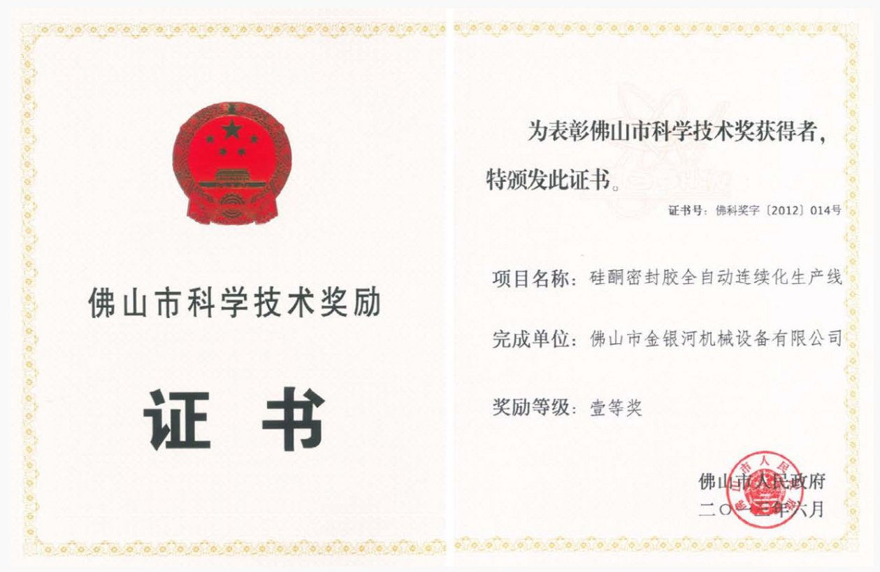 2013年6月,英国上市公司365项目“硅酮密封胶全自动连续化生产线”被佛山市人民政府授予“佛佛山市科学技术一等奖”。
