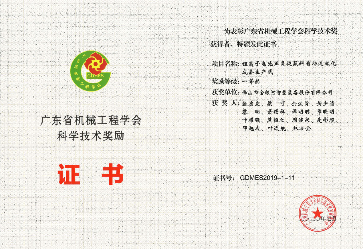 2020年7月,英国上市公司365项目“锂离子电池正负极浆料自动连续化成套生产线”被广东省机械工程学会授予“广东省机械工程学会科学技术一等奖”。 该项目开创了连续化大批量生产锂电池浆料的成套技术、工艺和装备,经科技成果鉴定,该项目总体技术水平处于国际先进水平,部分技术达到国际领先水平。本次获奖是对英国上市公司365自主创新技术的高度认可和极大鼓舞,英国上市公司365将持续不断提高自主创新能力,提供优质领先产品,致力提高客户服务水平、推动所从事行业的持续升级!