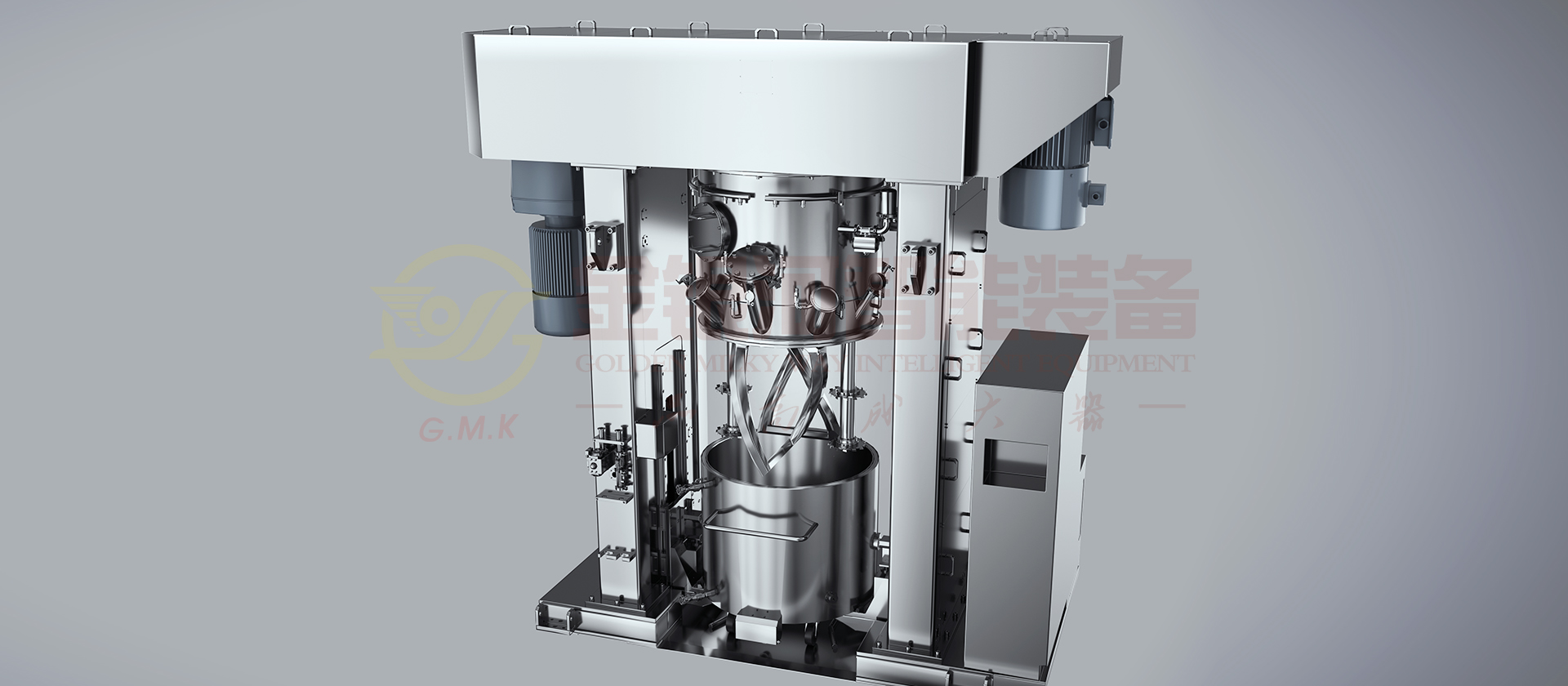 双行星动力混合机是结合了传统双行星搅拌机和高速分散机的原理,组成的一种高效的新机型,目前在新能源领域有着广泛的应用。 我司针对锂电池、电容浆料特性,在原行星式动力搅拌机的基础上,开发了具有高转速,大扭矩的增强型动力混合机,适用于干混、湿混工艺制备锂电正负极浆料。在设计过程中,我司充分考虑了搅拌器的合理转速、搅拌功率、分散线速度及合理的麻花桨形,减少高粘稠物料的阻力和桶内湍流强度的分布等因素,设计出更高效、更稳定的双行星动力混合机,可处理高黏度的浆料。